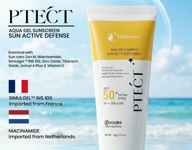 PTect Sunscreen is a lightweight, aqua-gel sunscreen by Cutigen designed for daily broad-spectrum protection with skincare benefits. Its advanced formulation blends powerful UV filters with skin-nourishing actives to protect and hydrate without a greasy finish.